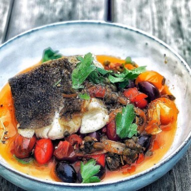 Medelhavet på en tallrik! Enkel fiskrätt som är sprängfylld med smaker som fungerar suveränt ihop.