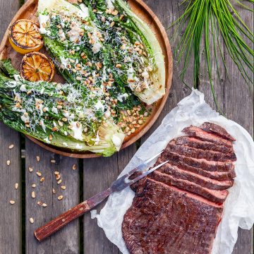 Saftig flankstek som serveras med grillad romansallad med tryffeldressing och parmesan. Enkelt att laga och ljuvligt gott!