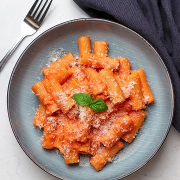 En enkel men fantastiskt god vegetarisk pastarätt! Passar lika bra en tisdagskväll som till helgmiddagen. Bli inte skrämd av vodkan, den tillför verkligen sitt till rätten och lyfter tomatsmaken och såsen till en ny nivå!