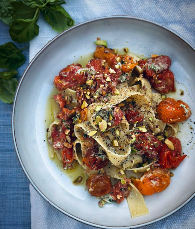 February 20, 2023Fettuccine med pistagepesto, ricotta och ugnsrostade tomater