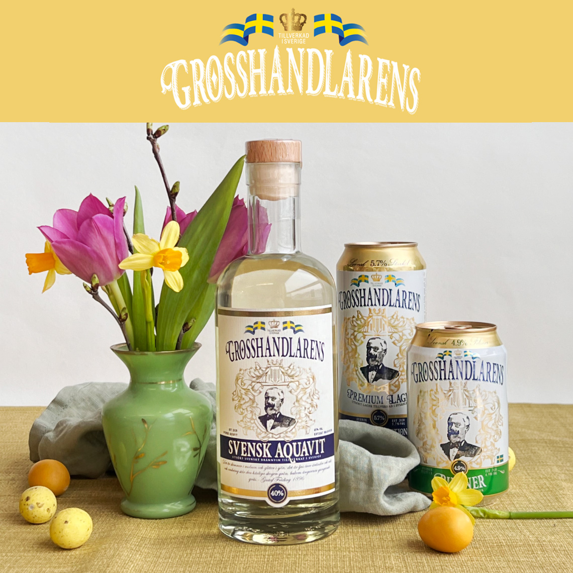 Upptäck Grosshandlarens Premium Lager, Pilsner och Aquavit – tre utvalda favoriter som kommer att förgylla din påsk!