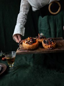 Höstmys med pumpadessert med valnötter, torkad frukt, kryddor och dadelsirap. Servera gärna med georgiskt orangevin Kakhuri. Vinet med sina toner av mogen frukt, stenfrukt, honung, kryddighet, fräsch syra och lätta tanniner passar perfekt till pumpadesserten. Traditionellt i Georgien gör man en hel pumpa med nötter och bakar i ugnen. Här delar vi butternutpumpan i portionsbitar som går att servera direkt med vaniljglass.
