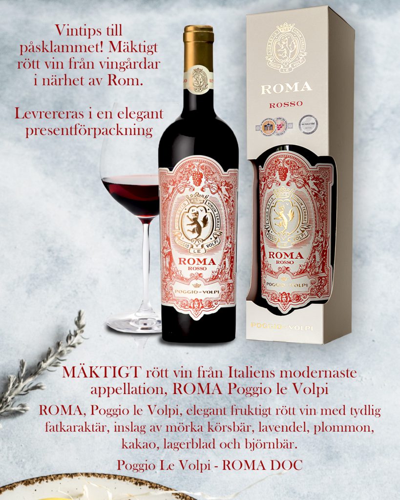 Visste du att ROMA DOC är en alldeles ny appellation i Italien, endast 10 år gammal. Trots att man har odlat vinrankor i Italien genom århundrade och det är en av äldsta och mest kända vinländer så har man alldeles nyligen skyddat ett område strax söder om Rom där det råder perfekta förhållanden för vinodling. Poggio le Volpi är ett elegant och fruktigt vin som levereras i en fin presentförpackning.